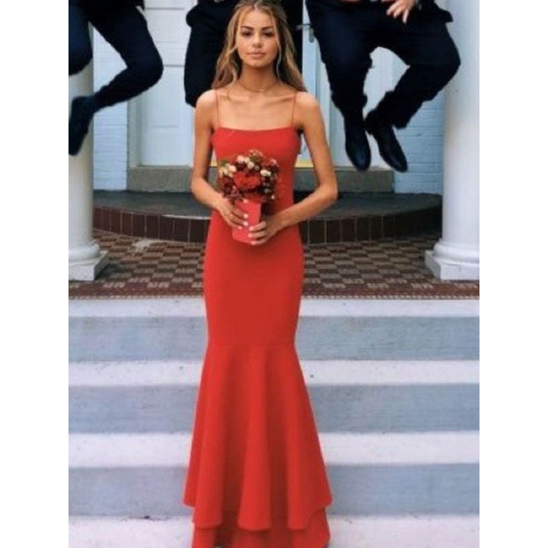 Sheath/Column Spaghetti Straps Sleeveless Floor-Length Layers Crepe Dresses