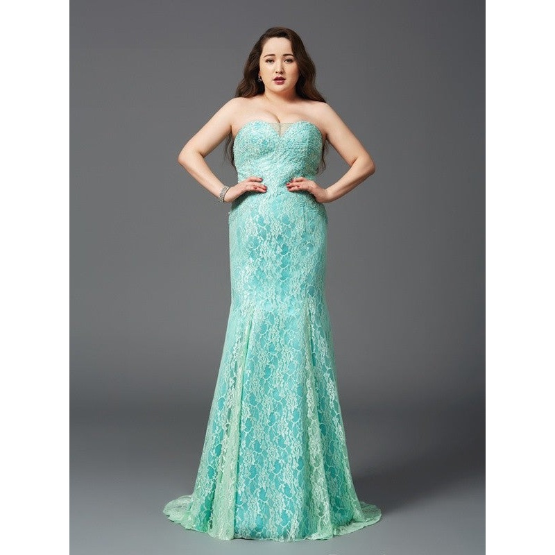 Sheath/Column Strapless Lace Sleeveless Long Satin Plus Size Dresses