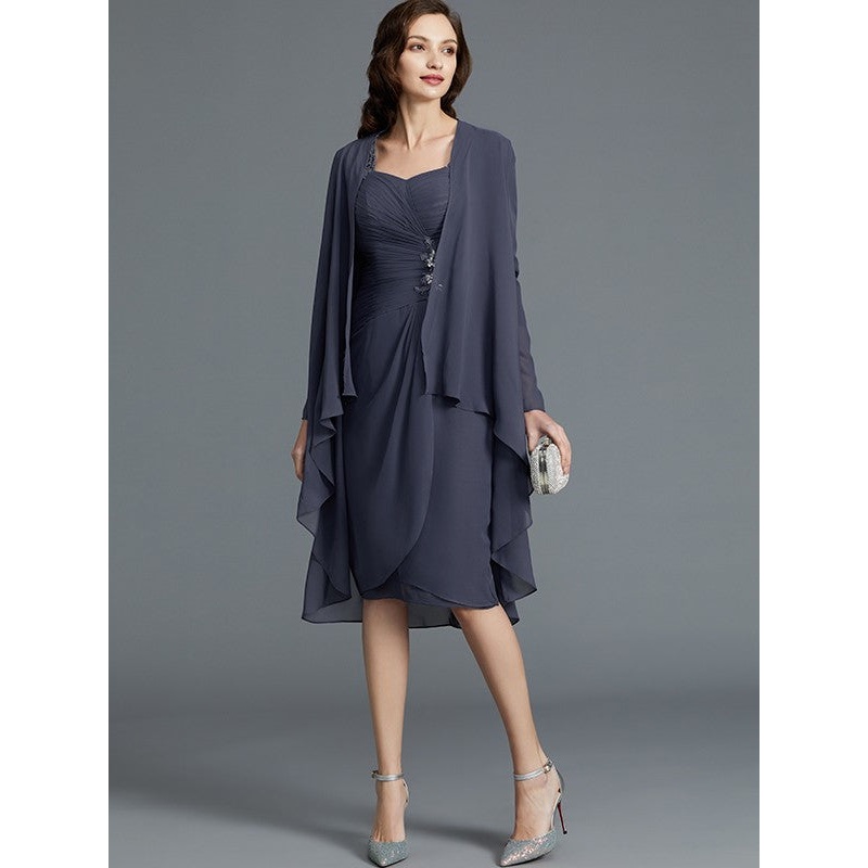 Sheath/Column Sweetheart Chiffon 1/2 Sleeves Knee-Length Mother of the Bride Dresses