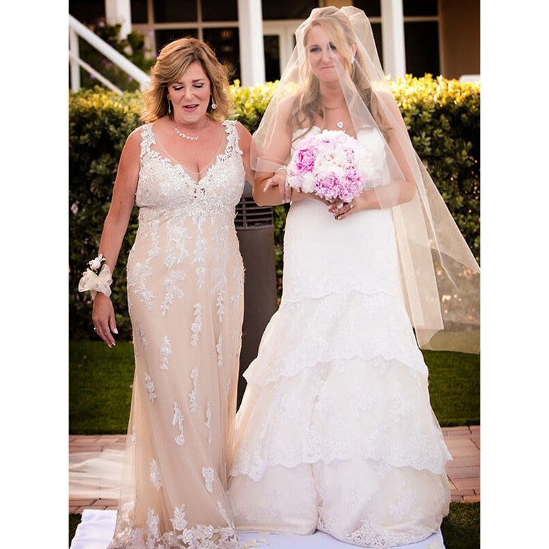 Sheath/Column Tulle Applique V-neck Sleeveless Floor-Length Mother of the Bride Dresses
