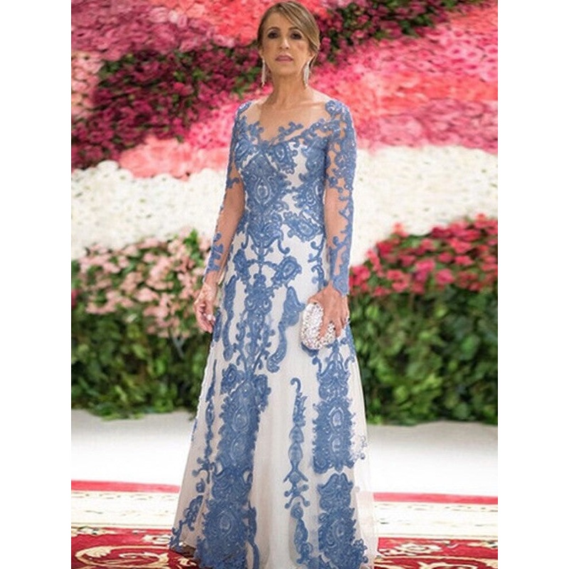 Sheath/Column Tulle Lace Scoop Long Sleeves Sweep/Brush Train Mother of the Bride Dresses