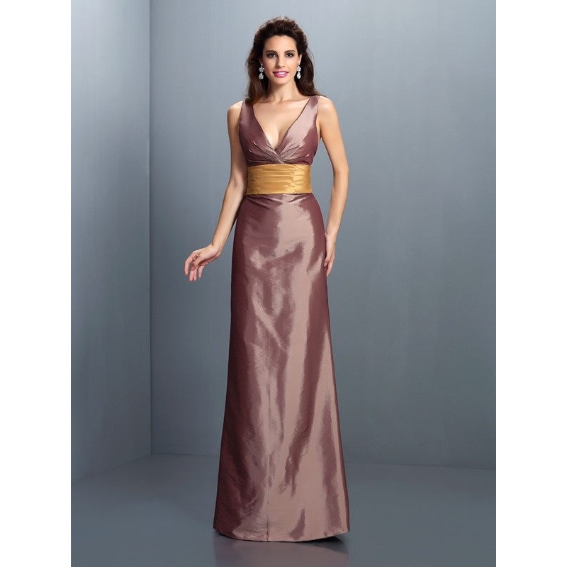 Sheath/Column V-neck Pleats Sleeveless Long Taffeta Dresses