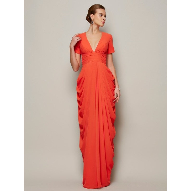 Sheath/Column V-neck Short Sleeves Pleats Long Chiffon Mother of the Bride Dresses