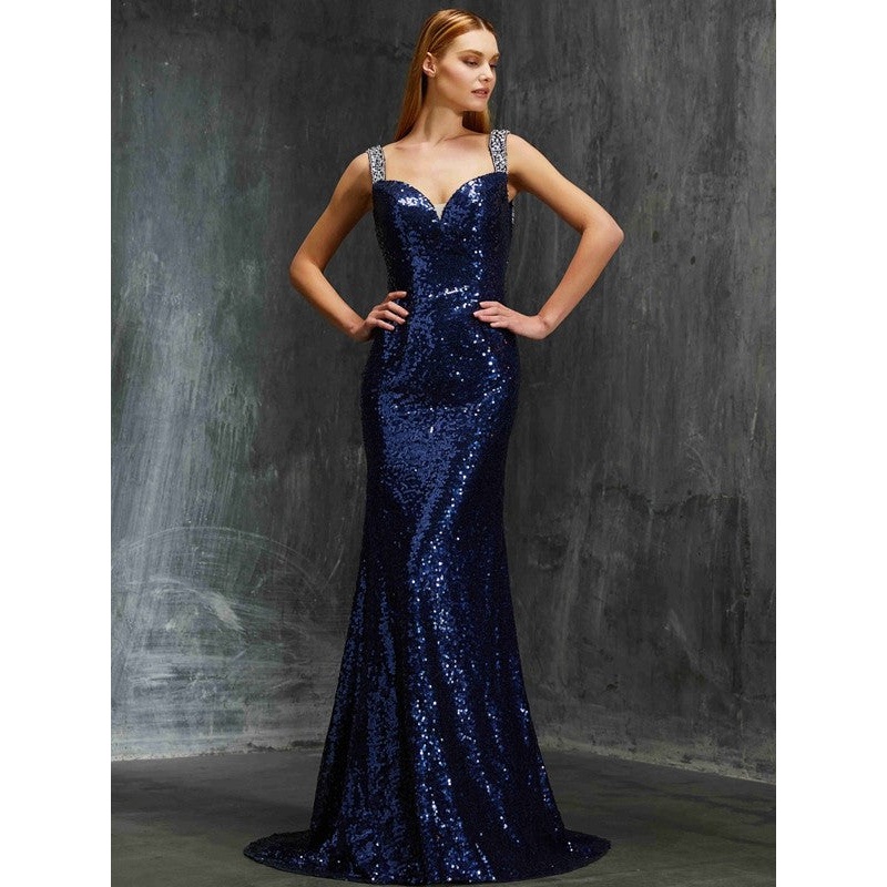Sheath/Column V-neck Sleeveless Sweep/Brush Train Beading Sequins Dresses
