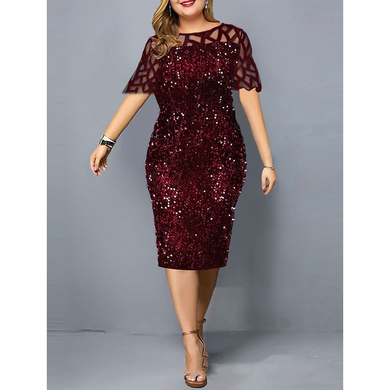 Be the first to review “Sheath Formal Dress Red Green Dresses Plus Size Dress Wedding Wedding Guest Knee Length Short Sleeve Jewel Neck Sequined with Sequin” Cancel reply