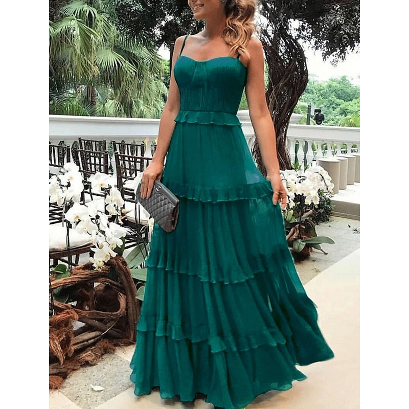 Sheath Party Dress Prom Dresses Maxi Dress Holiday Wedding Guest Floor Length Sleeveless Spaghetti Strap Chiffon with Ruffles Draping