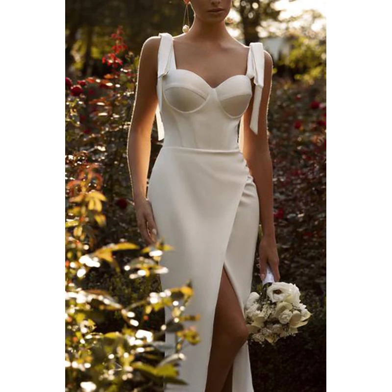 Sheath/Pillar Sweetheart Satin Split Satin Short Retro Wedding Dress