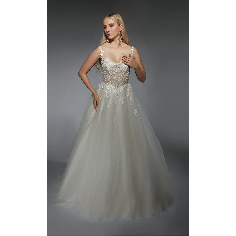 Sheer lace heart-shaped neckline tight corset lace applique wedding dress