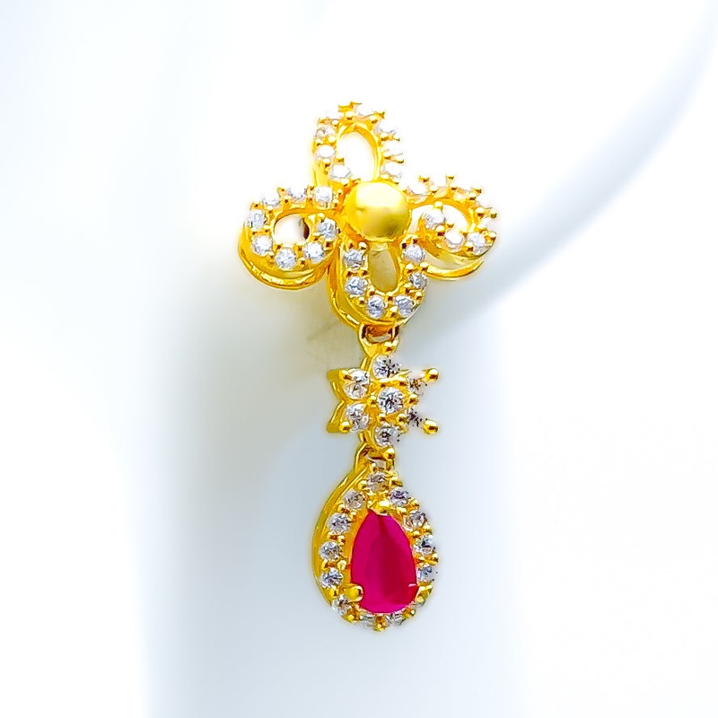Shimmering Jali 22k Gold CZ Hanging Earrings