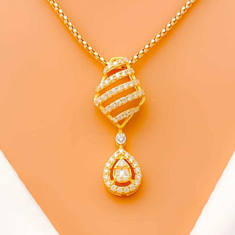 Shimmering Striped Diamond + 18k Gold Pendant