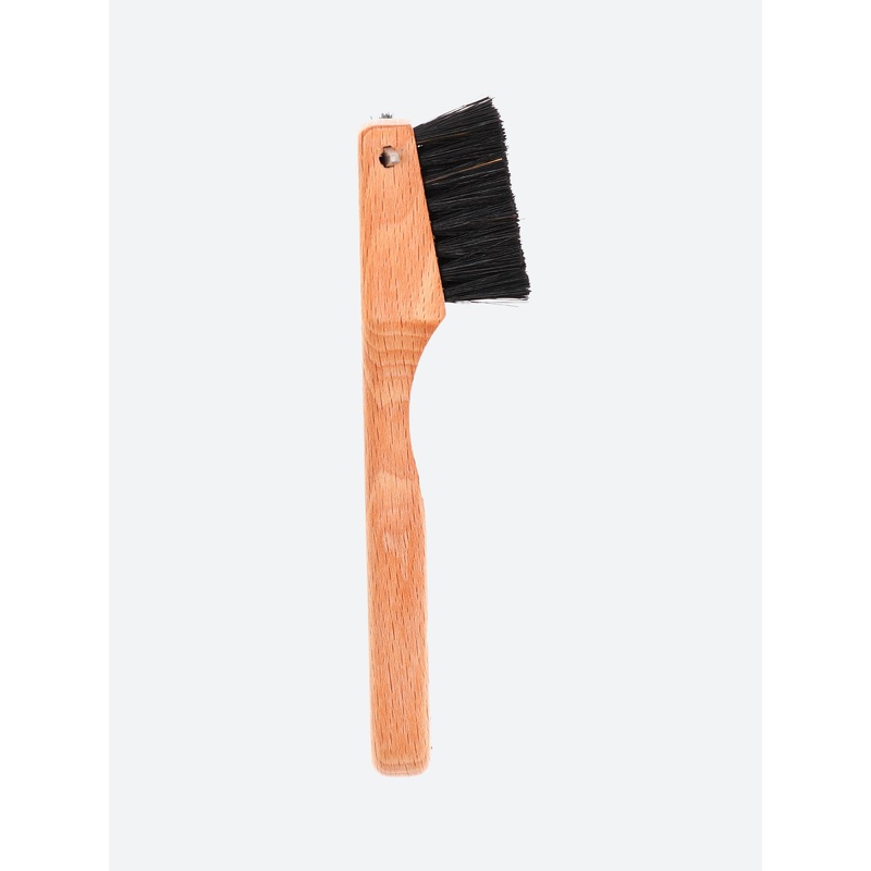 Coarse dirt can simply be brushed from shoes using the side with the tough bristles. For more narrow spaces, the extra-hard side with only one row is more suitable. For wedged-in stones and other stubborn dirt, use the stainless steel implement on the side