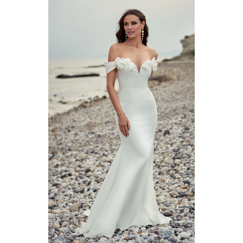 Shoulderless mermaid backless floral decal wedding dress