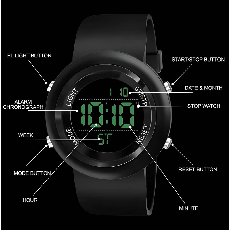 BrandSHURAIDisplay TypeDigitalIdeal ForBoysMechanismDigitalStyle CodeDigital Black Round Waterproof Gym Fitness FreekSeriesMen Waterproof Sports Watch for Men Boys with Backlight Alarm Snooze StopwatchOccasionCasual, Formal, Party-Wedding, SportsMovementDi
