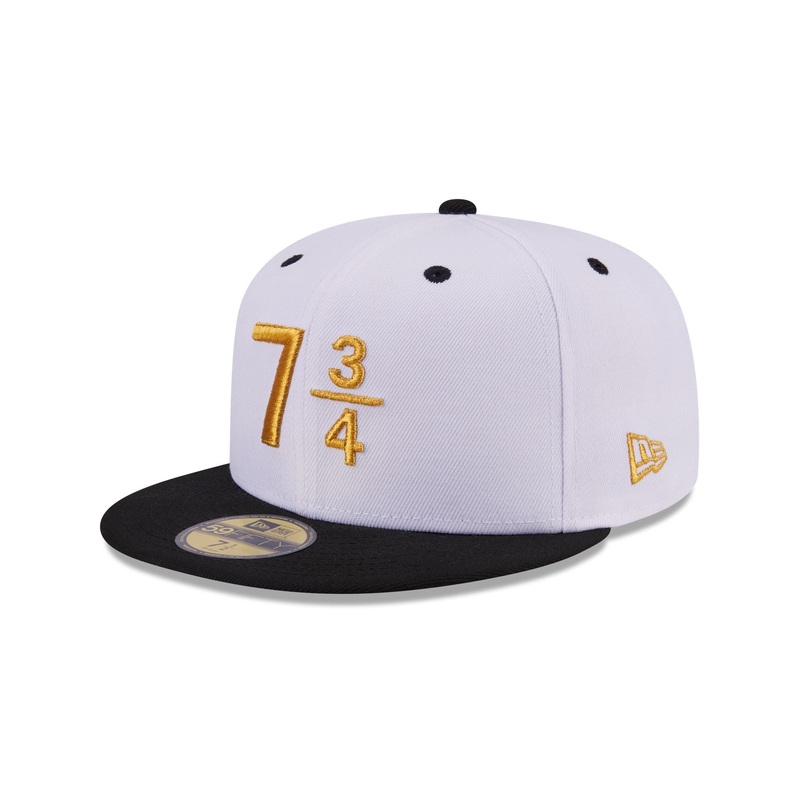 Celebrate 70 years of the iconic Fitted Cap this 59FIFTY Day! The Signature Size 7 3/4 White 59FIFTY Fitted Cap features the cap size embroidered at the front panels with the 59FIFTY logo at the rear, a black visor, and a gray undervisor.