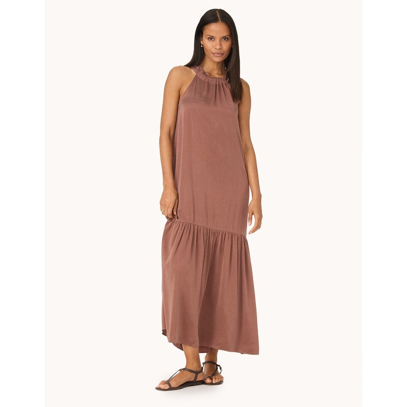 a relaxed take on elegance. crafted from luxuriously soft silk charmeuse, this maxi is easy to wear, and even easier to style. we designed it with adjustable self ties with bows in the back.