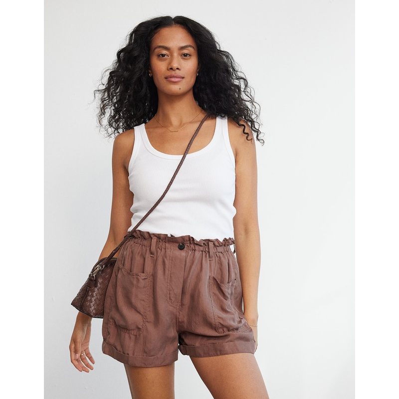 an all-purpose short that's up for everything. inspired by utility, it's detailed with patch pockets and bar tacks often found in classic denim. we crafted it in soft silk with a paperback waist for an elegant feel.elasticated paperbag waistbandbelt loops