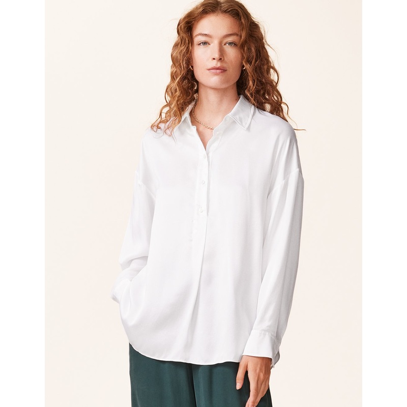 styling made simple. crafted from luxe silk charmeuse, this top blends sophistication with ease.half placket with mother-of-pearl buttonsshirt collarstyle id: 1201-1891-100