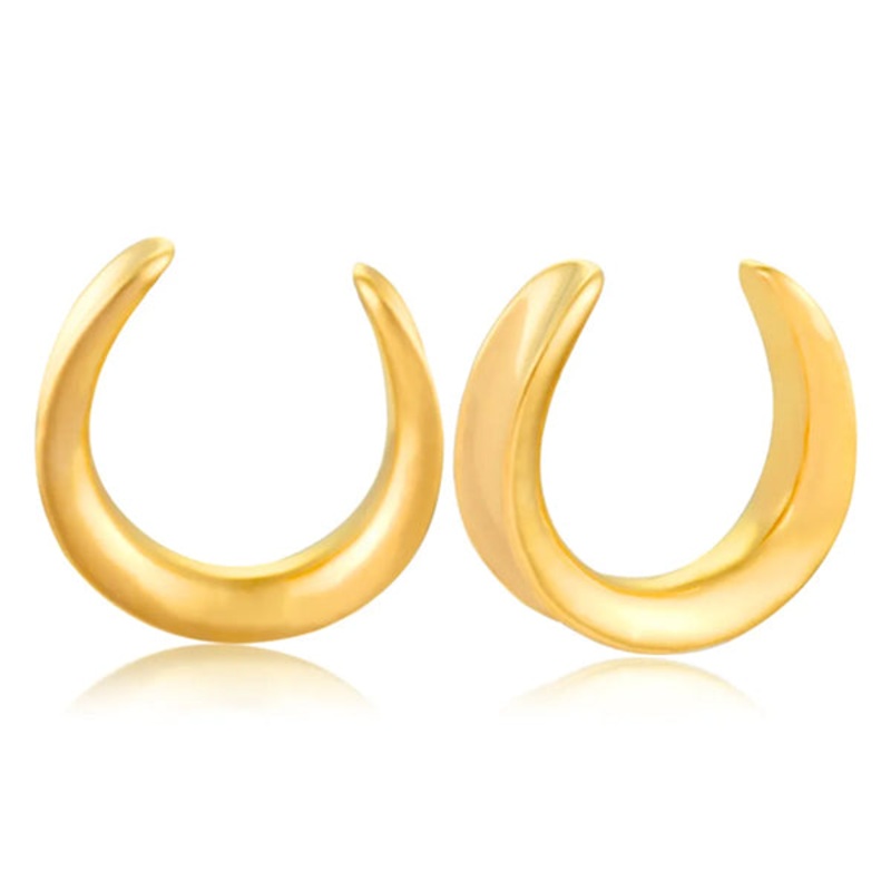 These simple saddle spreaders are made from gold PVD coated 316L stainless steel. We recommend buying these one size smaller than the double flare plugs you normally wear. Choose your size below.
