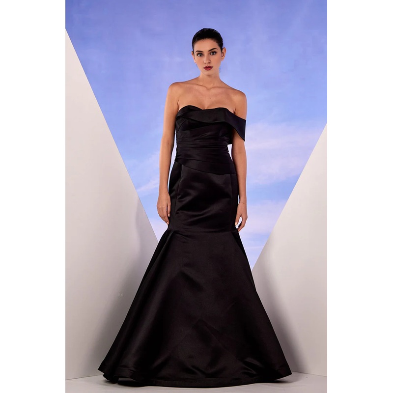 Single shoulder strap satin thin shoulder strap and floor length gown evening dresses