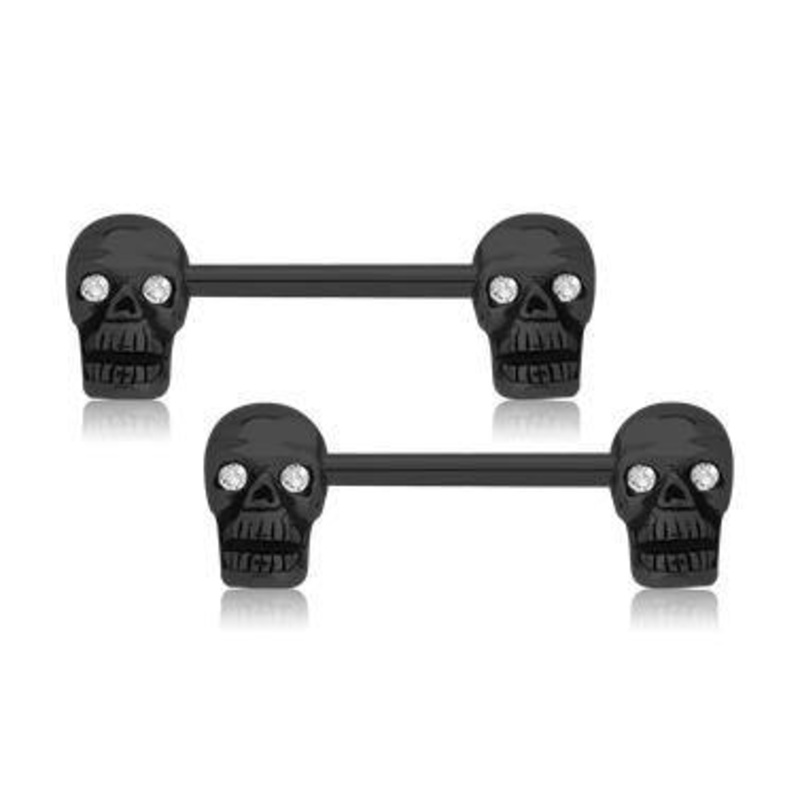 Skull Black Nipple Barbells 14g – 15/32″ long (12mm) Clear Black Stainless