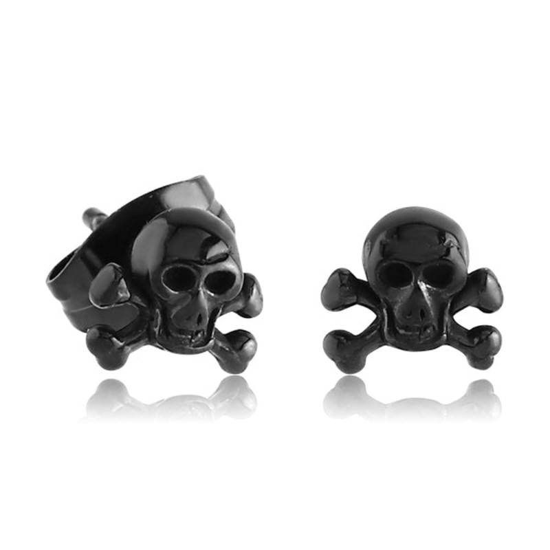These 20 gauge skull and crossbones stud earrings are made from black PVD coated 316L stainless steel.