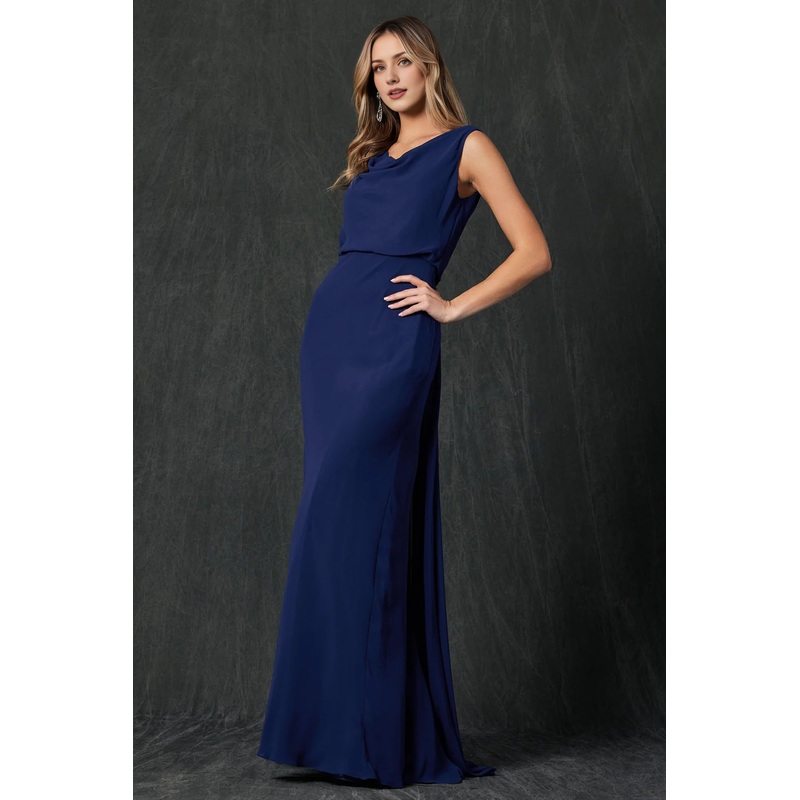 Sleeveless fit long hooded collar chiffon flowing trailing skirt dress