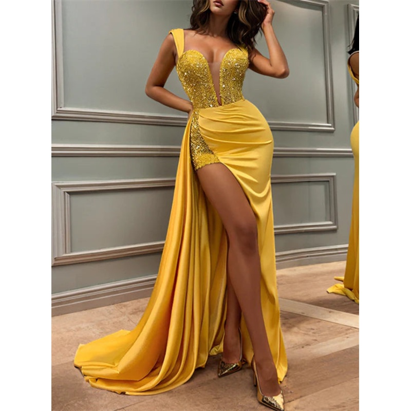 Slim fit/column sweetheart and floor length slit prom dress