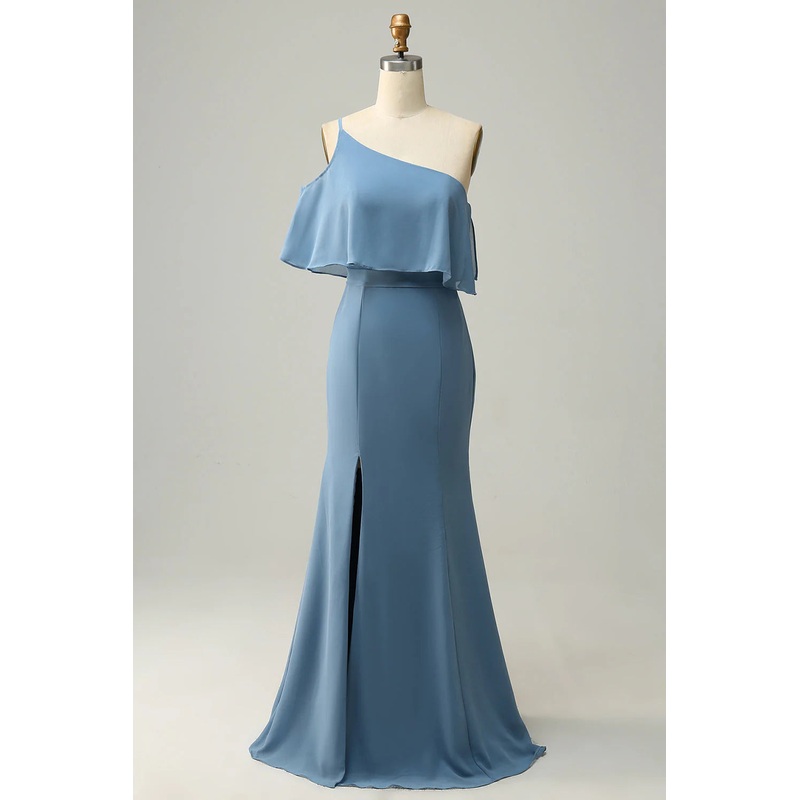 Slim fit one shoulder blue oversized bridesmaid dress