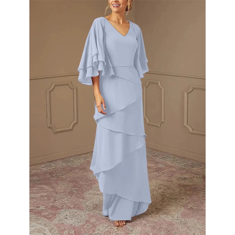 Slim fit/pillar V-neck mother of the bride dress