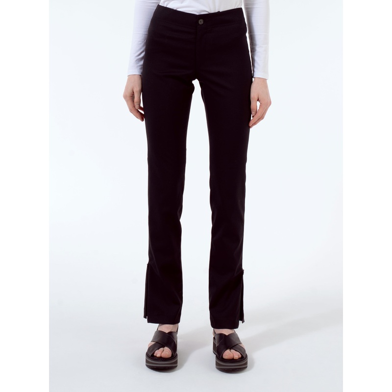 Slim trousers in draped wool twill with concealed zips at the hem.