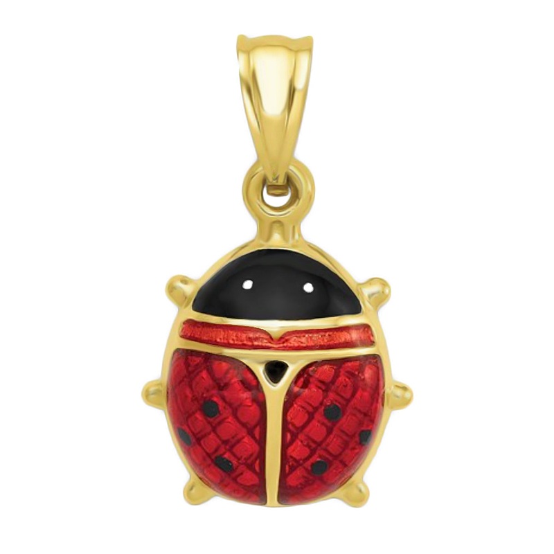 This small red ladybug charm in 14K yellow goldiscrafted as an exact replica of an original1970’svintage design. This cute little lady bug charm is decorated with red enamel on the body and black enamel on the head for a splash of color and fun! It measures1/2 inch wide by 7/8 inch high including the bail.