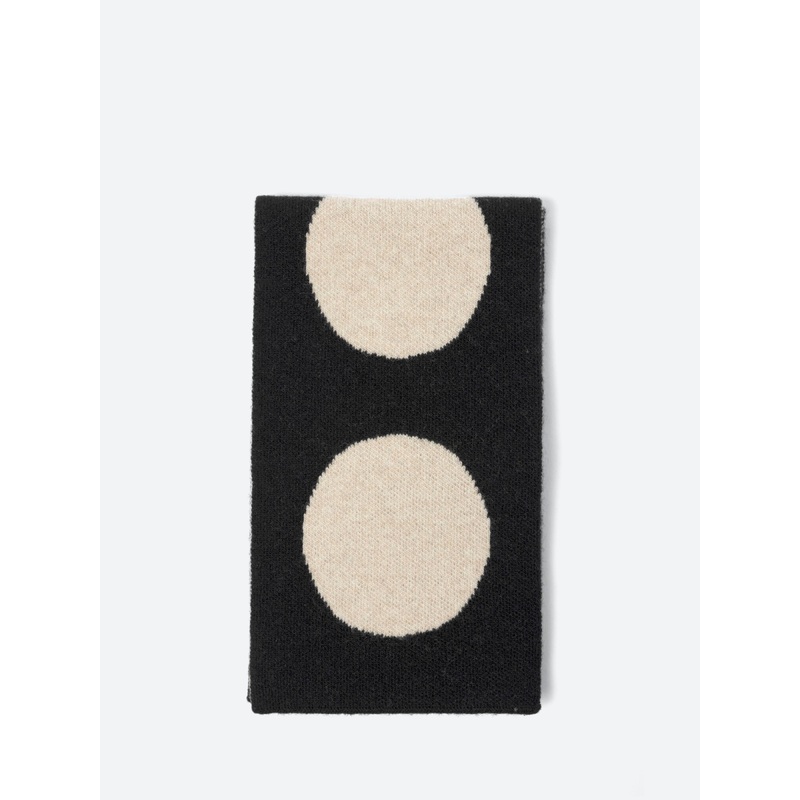 Jo Gordon soft and cozy all-season scarf with spots on a contrasting background - the reverse side has a more subtle tweed pattern.Small scarfSmooth jacquard knitContrasting spot patternOrganically dyedMaterialsFabric Content: 100% Scottish-spun lambswoolM