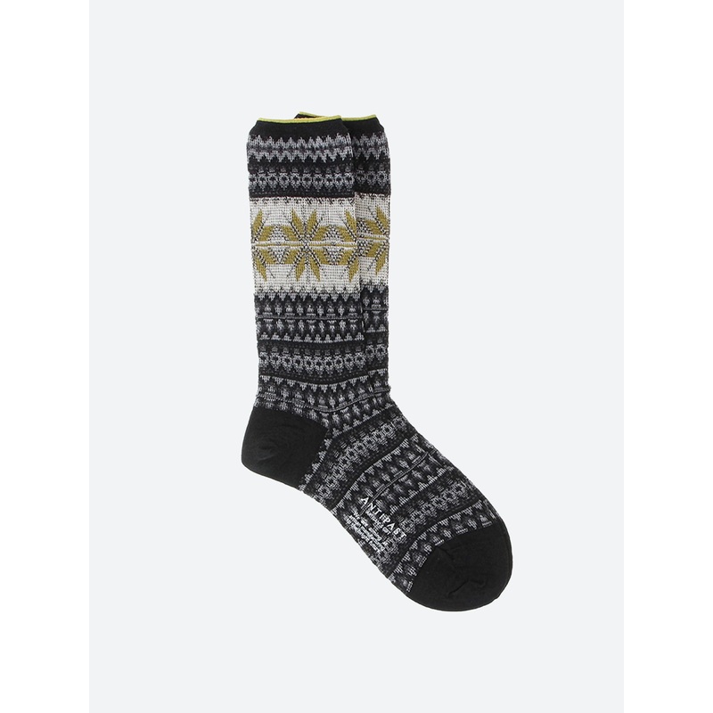Antipast fine gauge socks with a playful jacquard pattern.Crew lengthJacquard pattern throughoutFrilled elasticated cuffPrinted brandingMaterialsFabric Content: 60% wool, 40% nylonMade in JapanSize GuideOne size fits most. For additional size information,
