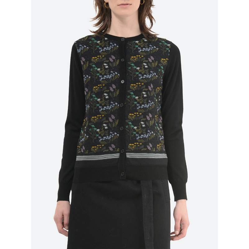 Antipast's Sock Knit Cardigan is a classic round neck cardigan with ribbed trim. Antipast is known for their intricately delicate knit patterns, and this is a gorgeous example.Round necklineRibbed at neck, cuffs and hemFloral pattern on frontMaterialsFabri
