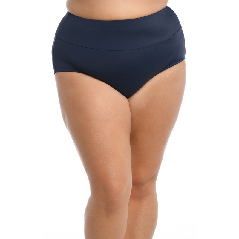 We love the classic look of solid color swim bottoms. They highlight and define your silhouette in all the right ways. The high-waisted cut features flattering tummy toner to discreetly conceal unwanted excess.Ample rear coverage allows you to move around freely and comfortably, without having to worry about exposing more than you want to. Bottom sold separately.