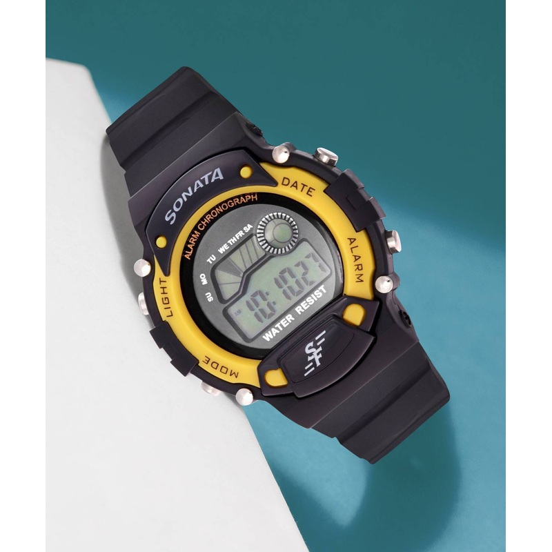 BrandSONATAWatch TypeWrist WatchDisplay TypeDigitalIdeal ForMenStyle CodeNG7982PP01JSeriesBy SonataOccasionCasual, FormalMovementQuartzPack of1Strap ColorBlackNet Quantity1Watch FeaturesChronograph, Date Display, Calendar, Alarm Clock, Water ResistantDial