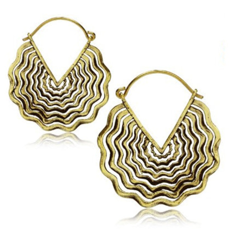 These 18 gaugesoundwaveearrings are cast from solidyellow brass and approximately 40mm high x 36mm wide.