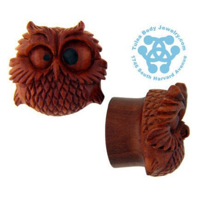 These double flare spazzy owl plugs are handcarved from sabo wood by Urban Star Organics. They have approximately 3/8" wearable area between the flares. Choose your size below.Last chance to own these! We can't restock this design because Urban Star is no