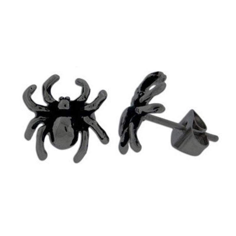 These 20 gauge black spider stud earrings are made from black PVD coated 316L stainless steel.