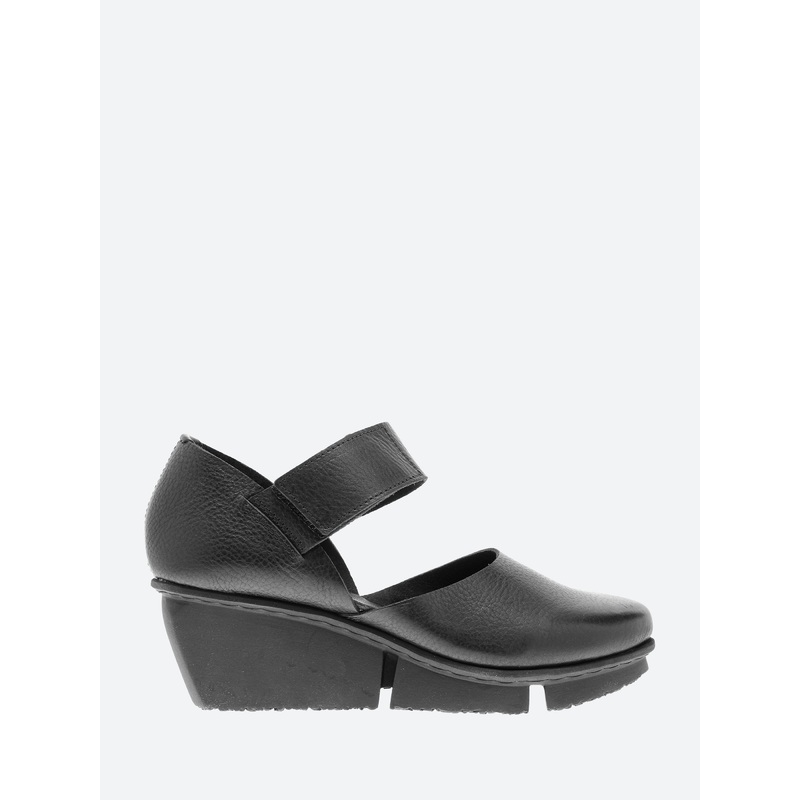 Trippen Hostess is a pump with an elegant minimalist design, cut out deeply at the sides.Adjustable Velcro strapFull grain leather insoleLeather footbedRound toeMeasurements:60mm heelMaterialsUpper: leatherLining: leatherOutsole: rubberMade in GermanySize