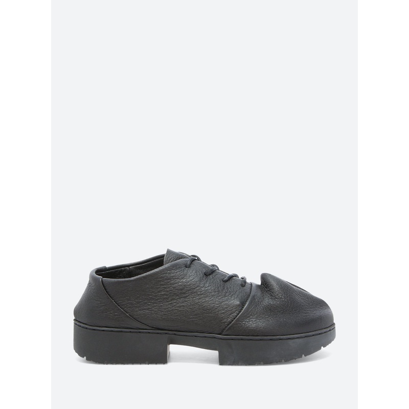 Trippen Haze lace-up shoe crafted from black leather. The upper acquires its form through the crease at the toe box.
