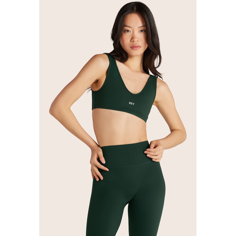 Sportbody Sporty Dip Bra. Made with our signature sleek and cooling performance fabric, this bra offers medium support and medium-high compression. Designed with a deep V front and back neckline. Please size up one size.