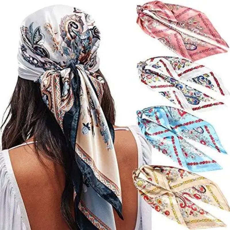 - SIZE – 35 x 35 inches/90cm x 90cm square headscarf. Smooth and shiny. Square bandana, classy neckerchief for women.