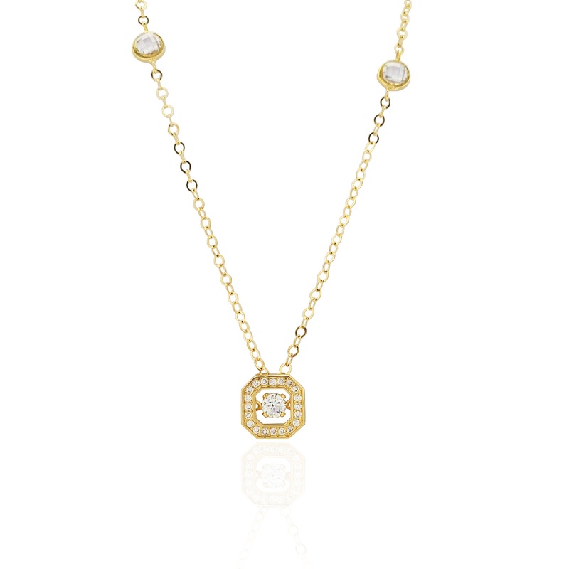 Square Locket CZ Pendant Necklace (14K).