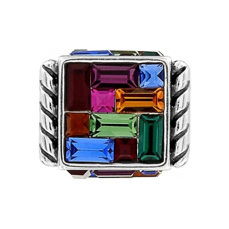 Like stained glass windows, the St. Michel cube bead symbolizes passion, with multi-hued fine quality crystals and a shimmery silver-plated finish.