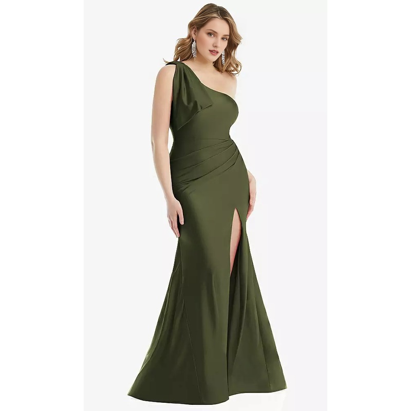 Stacked bow one shoulder silk satin mermaid Prom dress