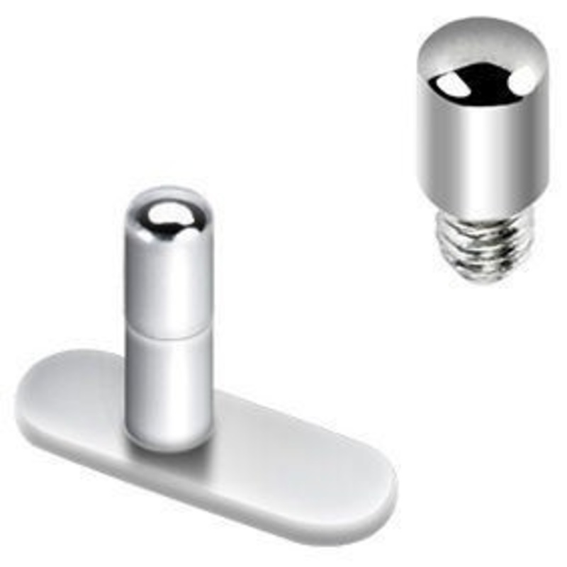 The 14 gauge healing post is made from 316L stainless steel. In order to demonstrate how it works, the post is shown screwed into a dermal anchor base on the left side of the photo. You will receive only the post shown in the right side of this photo (no base)!