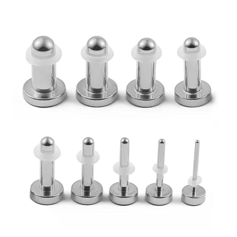 These single flare plugs are made from 316L stainless steel. They have a wearable area of 1/4" between the o-ring and flare. Two o-rings are included, but they may be either black or clear color. Choose your size below.