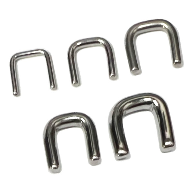 The staple septum retainer is made from 316L stainless steel. It has a 1/4" interior diameter. Choose your size below.