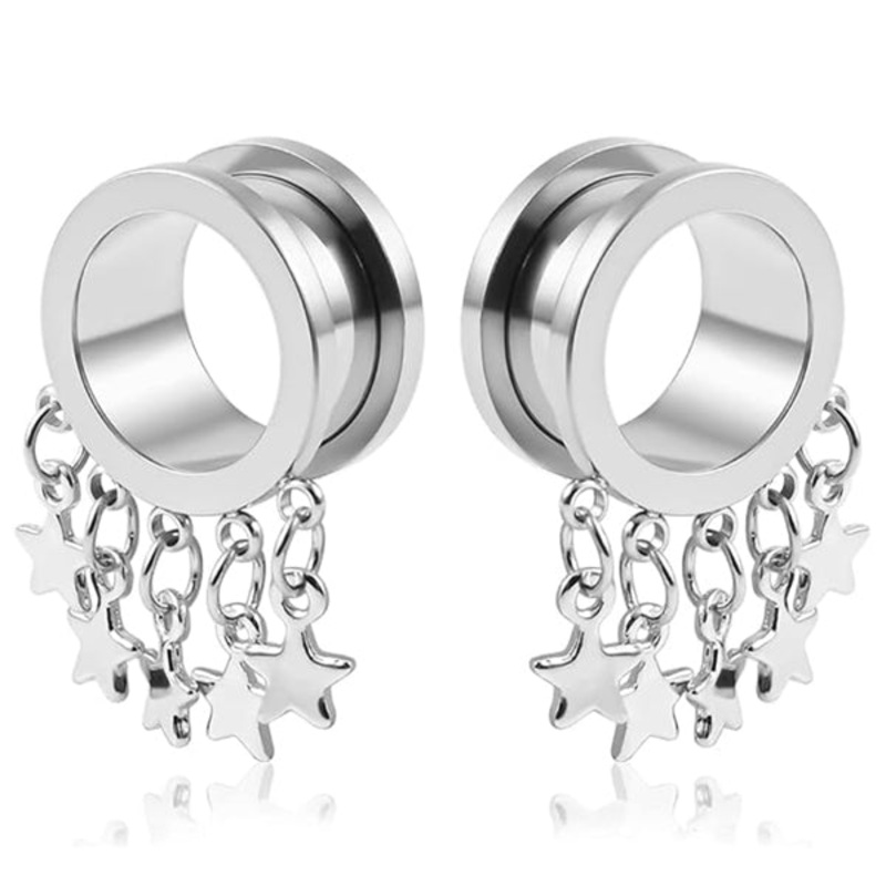 Star Dangles Stainless Screw-On Tunnels 2 gauge (6mm) Stainless Steel Pair